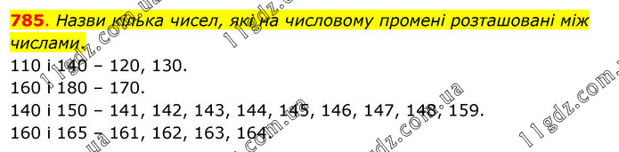 Назви кілька чисел, які на числовому промені розташовані між числами. 110 і 140 – 120, 130. 160 і 180 – 170. 140 і 150 – 141, 142, 143, 144, 145, 146, 147, 148, 159. 160 і 165 – 161, 162, 163, 164.