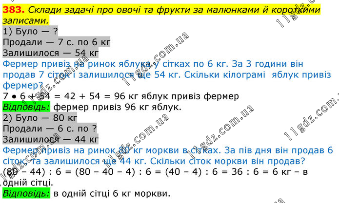 Склади задачі про овочі та фрукти за малюнками й короткими записами
