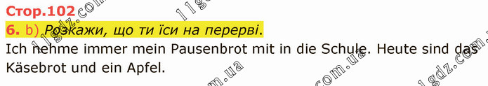b) Розкажи, що ти їси на перерві. Ich nehme immer mein Pausenbrot mit in die Schule. Heute sind das Käsebrot und ein Apfel.