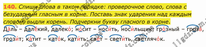 Спиши слова в таком порядке: проверочное слово, слова с безударным гласным в корне. Поставь знак ударения над каждым словом, выдли корень. Подчеркни букву гласного в корне. Да́ль – далё́кий, далеко́; но́сит – носи́ть, носи́льщик; гро́зный – гроза́, грози́т; ка́тит – като́к, кати́ть; све́т – свети́ть, светлячо́к.