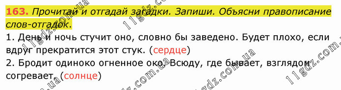 Прочитай и отгадай загадки. Запиши. Объясни правописание слов-отгадок. 1. День и ночь стучит оно, словно бы заведено. Будет плохо, если вдруг прекратится этот стук. (сердце) 2. Бродит одиноко огненное око. Всюду, где бывает, взглядом согревает. (солнце)