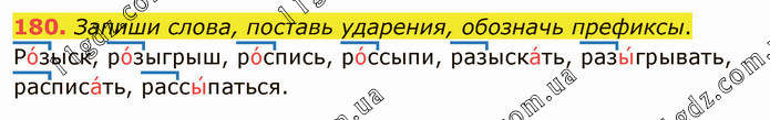 Запиши слова, поставь ударения, обозначь префиксы. Ро́зыск, ро́зыгрыш, ро́спись, ро́ссыпи, разыска́ть, разы́грывать, расписа́ть, рассы́паться.