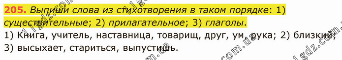 Выпиши слова из стихотворения в таком порядке: 1) существительные; 2) прилагательное; 3) глаголы. 1) Книга, учитель, наставница, товарищ, друг, ум, рука; 2) близкий; 3) высыхает, стариться, выпустишь.
