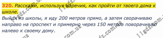 Расскажи, используя наречия, как пройти от твоего дома к школе. Выйдя из школы, я иду 200 метров прямо, а затем сворачиваю направо на проспект и примерно через 150 метров поворачиваю налево к своему дому.