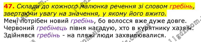 Склади до кожного малюнка речення зі словом гребінь, звертаючи увагу на значення, у якому його вжито.