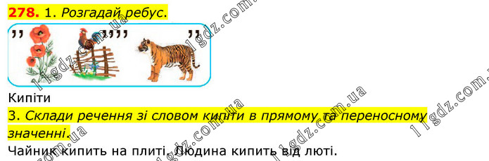1. Розгадай ребус. Кипіти 3. Склади речення зі словом кипіти в прямому та переносному значенні. Чайник кипить на плиті. Людина кипить від люті.