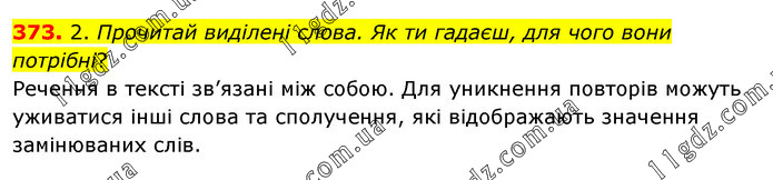 2. Прочитай виділені слова. Як ти гадаєш, для чого вони потрібні? Речення в тексті зв’язані між собою. Для уникнення повторів можуть уживатися інші слова та сполучення, які відображають значення замінюваних слів.