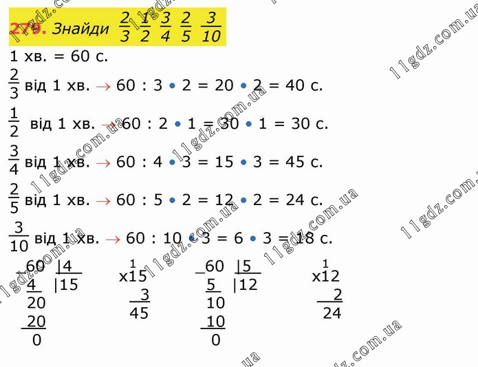Знайди 2/3 1/2 3/4 2/5 3/10 від 1 хвилини