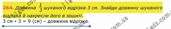 Довжина 1/3 шуканого відрізка 3 см. Знайди довжину шуканого відрізка й накресли його в зошиті. 3 см • 3 = 9 (см) – довжина відрізка.