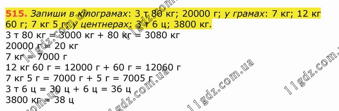 Запиши в кілограмах: 3 т 80 кг; 20000 г; у грамах: 7 кг; 12 кг 60 г; 7 кг 5 г; у центнерах: 3 т 6 ц; 3800 кг.