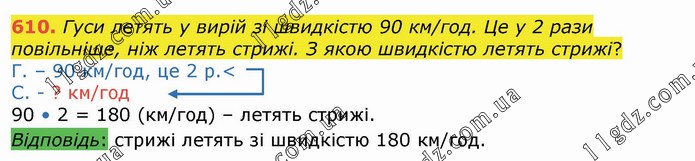 Гуси летять у вирій зі швидкістю 90 км/год. Це у 2 рази повільніше, ніж летять стрижі. З якою швидкістю летять стрижі?
