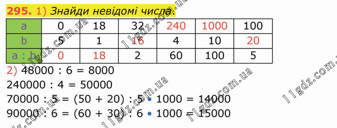 2) 48000 : 6 = 8000 240000 : 4 = 50000 70000 : 5 = (50 + 20) : 5 • 1000 = 14000 90000 : 6 = (60 + 30) : 6 • 1000 = 15000