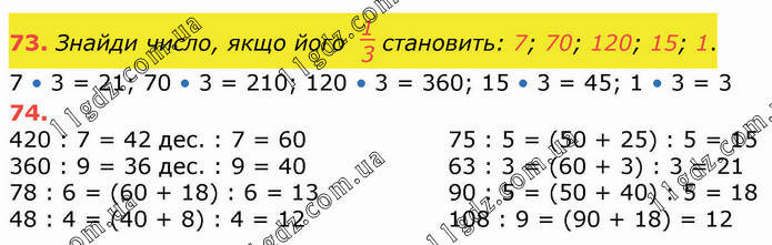 Знайди число, якщо його 1/3 становить: 7; 70; 120; 15; 1.