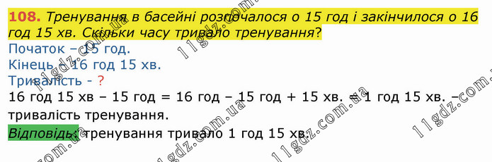Тренування в басейні розпочалося о 15 год і закінчилося о 16 год 15 хв. Скільки часу тривало тренування? Початок – 15 год. Кінець – 16 год 15 хв. Тривалість - ?