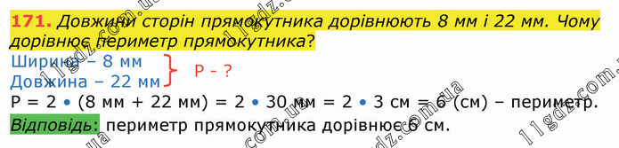 Довжини сторін прямокутника дорівнюють 8 мм і 22 мм. Чому дорівнює периметр прямокутника?