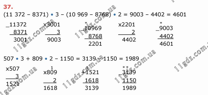 (11 372 – 8371) • 3 – (10 969 – 8768) • 2 = 9003 – 4402 = 4601 507 • 3 + 809 • 2 – 1150 = 3139 – 1150 = 1989
