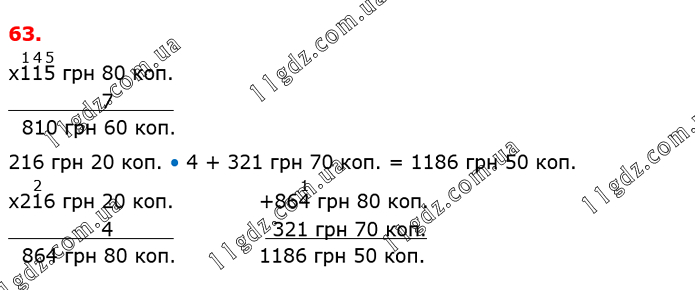 216 грн 20 коп. • 4 + 321 грн 70 коп. = 1186 грн 50 коп.