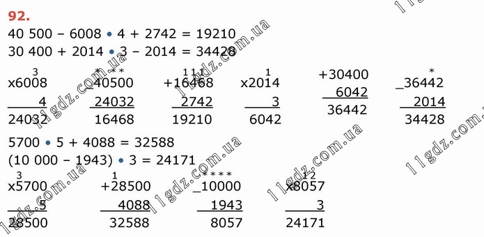40 500 – 6008 • 4 + 2742 = 19210 30 400 + 2014 • 3 – 2014 = 34428 5700 • 5 + 4088 = 32588 (10 000 – 1943) • 3 = 24171