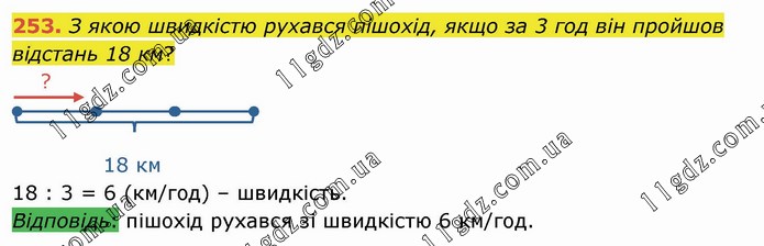 З якою швидкістю рухався пішохід, якщо за 3 год він пройшов відстань 18 км? ? 18 км 18 : 3 = 6 (км/год) – швидкість. Відповідь: пішохід рухався зі швидкістю 6 км/год.