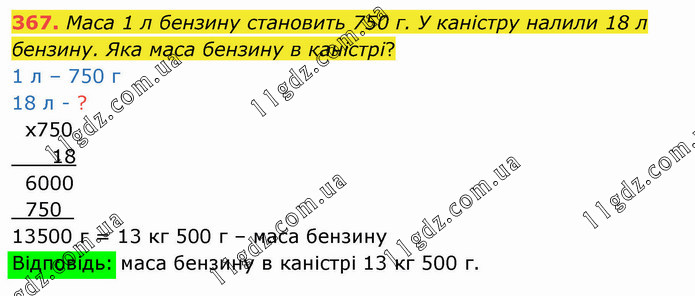 Маса 1 л бензину становить 750 г. У каністру налили 18 л бензину. Яка маса бензину в каністрі? 1 л – 750 г 18 л - ?