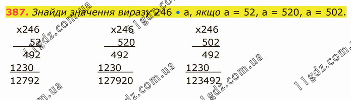 Знайди значення виразу 246 • а, якщо а = 52, а = 520, а = 502.