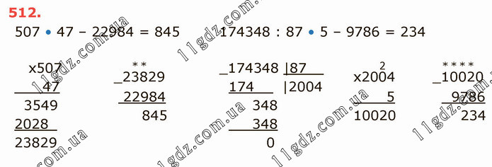 507 • 47 – 22984 = 845 174348 : 87 • 5 – 9786 = 234