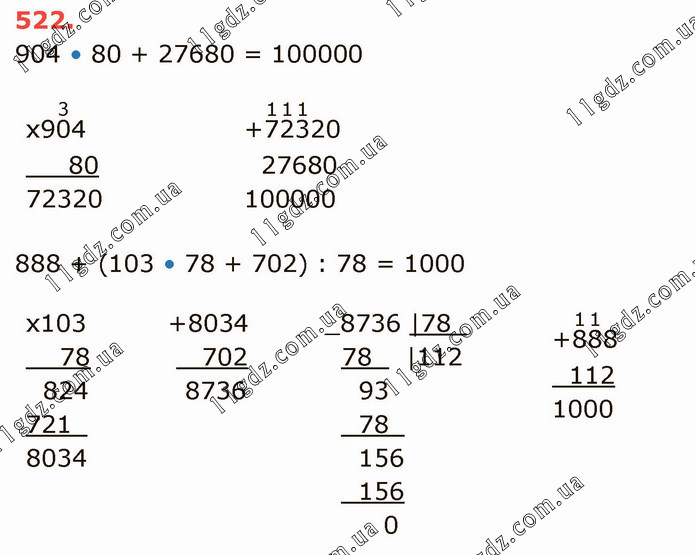 904 • 80 + 27680 = 100000 888 + (103 • 78 + 702) : 78 = 1000
