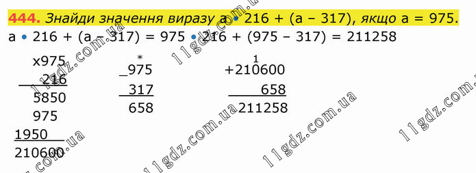 Знайди значення виразу а • 216 + (а – 317), якщо а = 975. а • 216 + (а – 317) = 975 • 216 + (975 – 317) = 211258