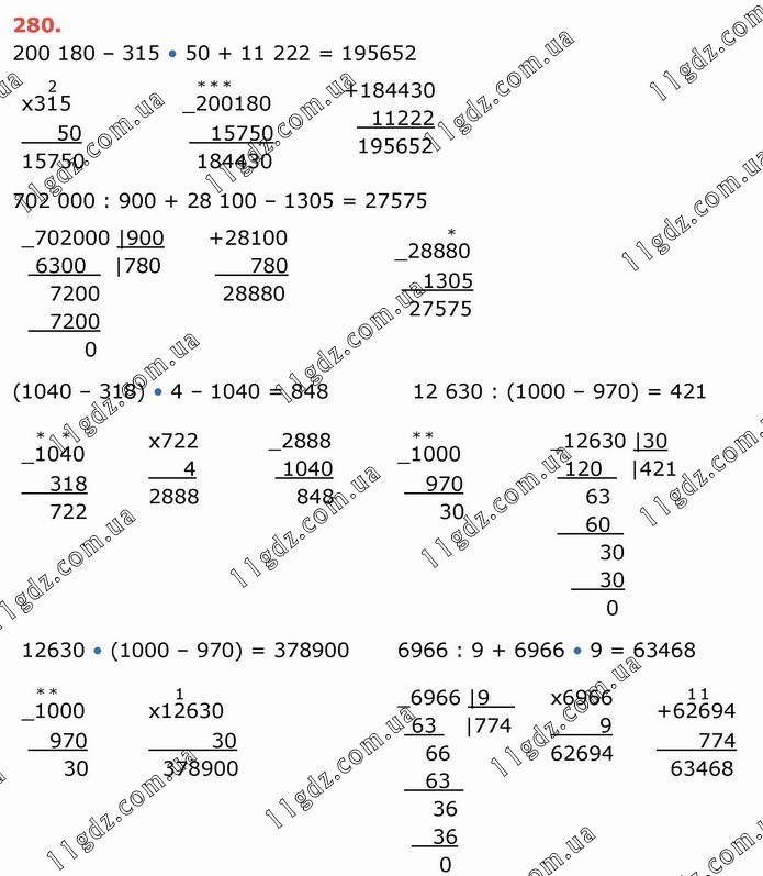 200 180 – 315 • 50 + 11 222 = 195652 702 000 : 900 + 28 100 – 1305 = 27575