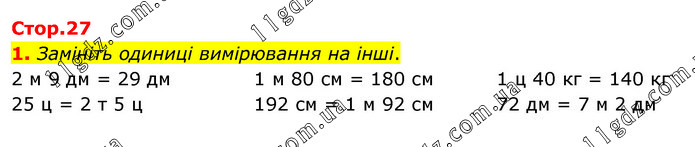 Замініть одиниці вимірювання на інші. 2 м 9 дм = 29 дм 25 ц = 2 т 5 ц 1 м 80 см = 180 см 192 см = 1 м 92 см 1 ц 40 кг = 140 кг 72 дм = 7 м 2 дм