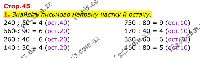 ЧАСТИНА 2. Розділ 4. Письмове множення і ділення » Стр.45 (1)