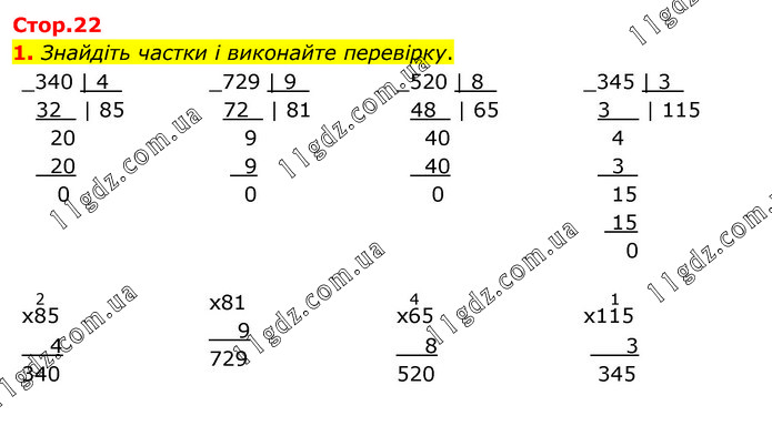 ЧАСТИНА 2. Розділ 4. Письмове множення і ділення » Стр.22 (1)