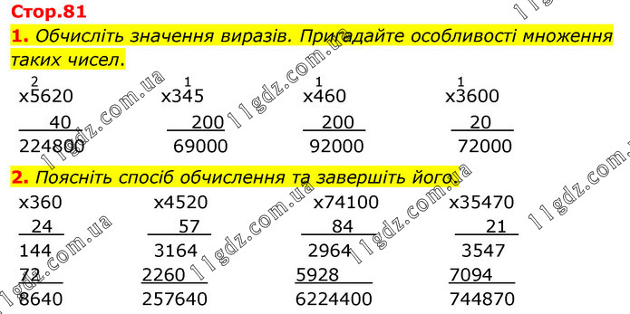 Розділ 5. Дроби. Письмове множення » Стр.81 (1-2)