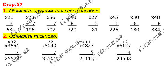 Розділ 5. Дроби. Письмове множення » Стр.67 (1-2)
