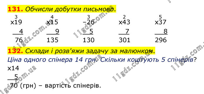Склади і розв'яжи задачу за малюнком. Ціна одного спінера 14 грн. Скільки коштують 5 спінерів?