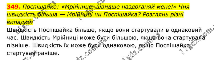 Поспішайко: «Мрійнице, швидше наздоганяй мене!» Чия швидкість більша — Мрійниці чи Поспішайка? Розглянь різні випадки. Швидкість Поспішайка більше, якщо вони стартували в однаковий час. Швидкість Мрійниці може бути більшою, якщо вона стартувала пізніше. Швидкість їх може бути однаковою, якщо Поспішайко стартував раніше.