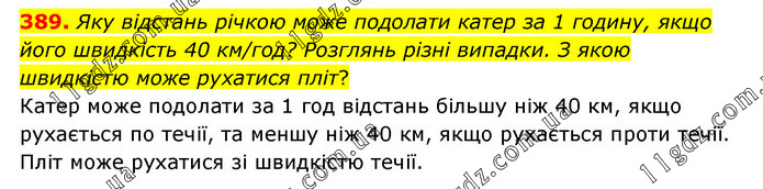 Яку відстань річкою може подолати катер за 1 годину, якщо його швидкість 40 км/год? Розглянь різні випадки. З якою швидкістю може рухатися пліт? Катер може подолати за 1 год відстань більшу ніж 40 км, якщо рухається по течії, та меншу ніж 40 км, якщо рухається проти течії. Пліт може рухатися зі швидкістю течії.