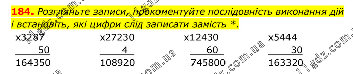 2. Множення і ділення багатоцифрових чисел » 184