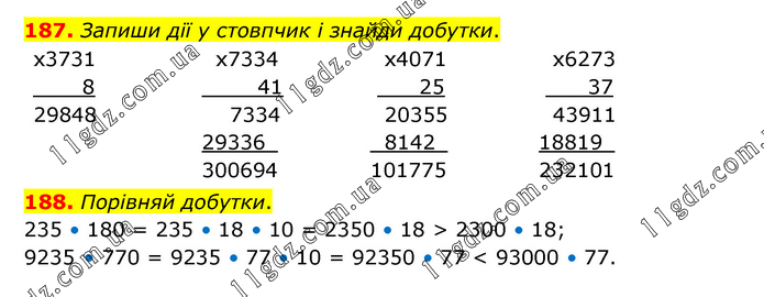 2. Множення і ділення багатоцифрових чисел » 187-188