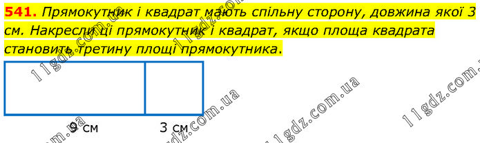 Прямокутник і квадрат мають спільну сторону, довжина якої 3 см. Накресли ці прямокутник і квадрат, якщо площа квадрата становить третину площі прямокутника.