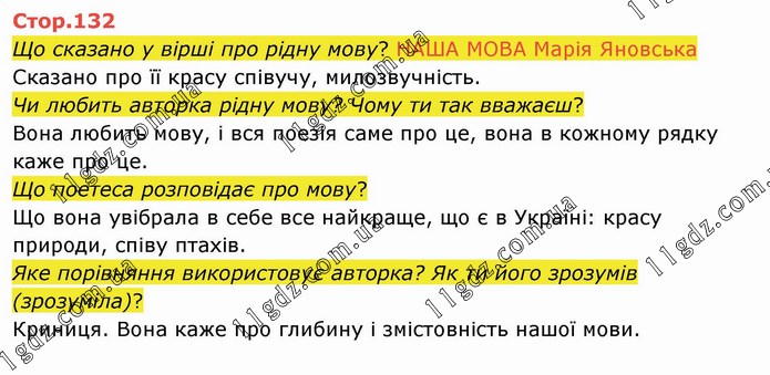 Що сказано у вірші про рідну мову? НАША МОВА Марія Яновська Сказано про її красу співучу, милозвучність. Чи любить авторка рідну мову? Чому ти так вважаєш? Вона любить мову, і вся поезія саме про це, вона в кожному рядку каже про це. Що поетеса розповідає про мову? Що вона увібрала в себе все найкраще, що є в Україні: красу природи, співу птахів. Яке порівняння використовує авторка? Як ти його зрозумів (зрозуміла)? Криниця. Вона каже про глибину і змістовність нашої мови.