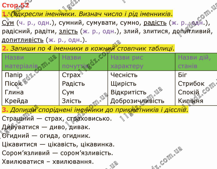 Розділ 5. СЛОВО. ЧАСТИНИ МОВИ » Стр.52 (1-3)