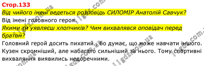 Від чийого імені ведеться розповідь СИЛОМІР Анатолій Савчук? Від імені головного героя. Якими ти уявляєш хлопчиків? Чим вихвалявся оповідач перед братом? Головний герой досить пихатий , бо думає, що може навчати іншого. Кузен скромніший, але набагато сильніший за нього. Тому спортивні вихваляння виявились недоречними.