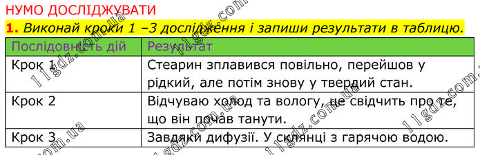 НУМО ДОСЛІДЖУВАТИ 1. Виконай кроки 1 –3 дослідження і запиши результати в таблицю.