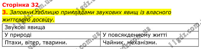Заповни таблицю прикладами звукових явищ із власного життєвого досвіду.