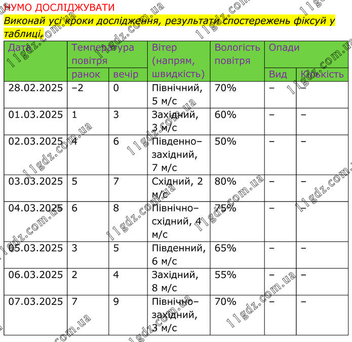 НУМО ДОСЛІДЖУВАТИ Виконай усі кроки дослідження, результати спостережень фіксуй у таблиці.