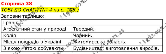 ТОБІ ДО СНАГИ (№ 4 на с. 106.) Заповни таблицю: