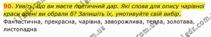 Уявіть, що ви маєте поетичний дар. Які слова для опису чарівної краси осені ви обрали б? Запишіть їх, умотивуйте свій вибір. Фантастична, прекрасна, чарівна, заворожлива, тепла, золотава, листопадна