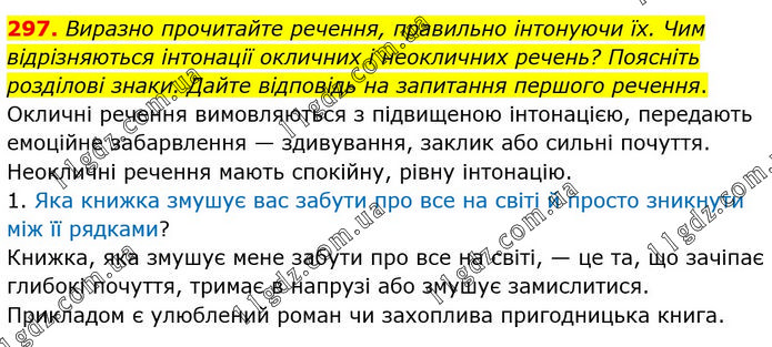 Виразно прочитайте речення, правильно інтонуючи їх. Чим відрізняються інтонації окличних і неокличних речень? Поясніть розділові знаки. Дайте відповідь на запитання першого речення. Окличні речення вимовляються з підвищеною інтонацією, передають емоційне забарвлення — здивування, заклик або сильні почуття. Неокличні речення мають спокійну, рівну інтонацію. 1. Яка книжка змушує вас забути про все на світі й просто зникнути між її рядками? Книжка, яка змушує мене забути про все на світі, — це та, що зачіпає глибокі почуття, тримає в напрузі або змушує замислитися. Прикладом є улюблений роман чи захоплива пригодницька книга.