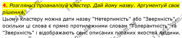 Розглянь і проаналізуй кластер. Дай йому назву. Аргументуй своє рішення. Цьому кластеру можна дати назву "Нетерпимість" або "Зверхність", оскільки ці слова є прямо протилежними словам "Толерантність" та "Зверхність" і відображають сенс описаних поганих якостей людини.